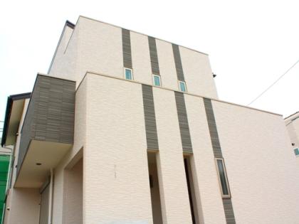 『N様邸は、モノトーンのモダンな外観です。スリット窓に合わせて、サイディングを張り合わせ、アクセントとしました。