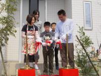コンセプトハウスとして建てられた建物ですので、上棟式での餅まきは当社がしましたが、M様はお引っ越しの時に紅白餅をたくさんのお友達にふるまわれました。記念撮影もそのお友達と大勢で!とても賑やかなお引渡し式になりましたね。